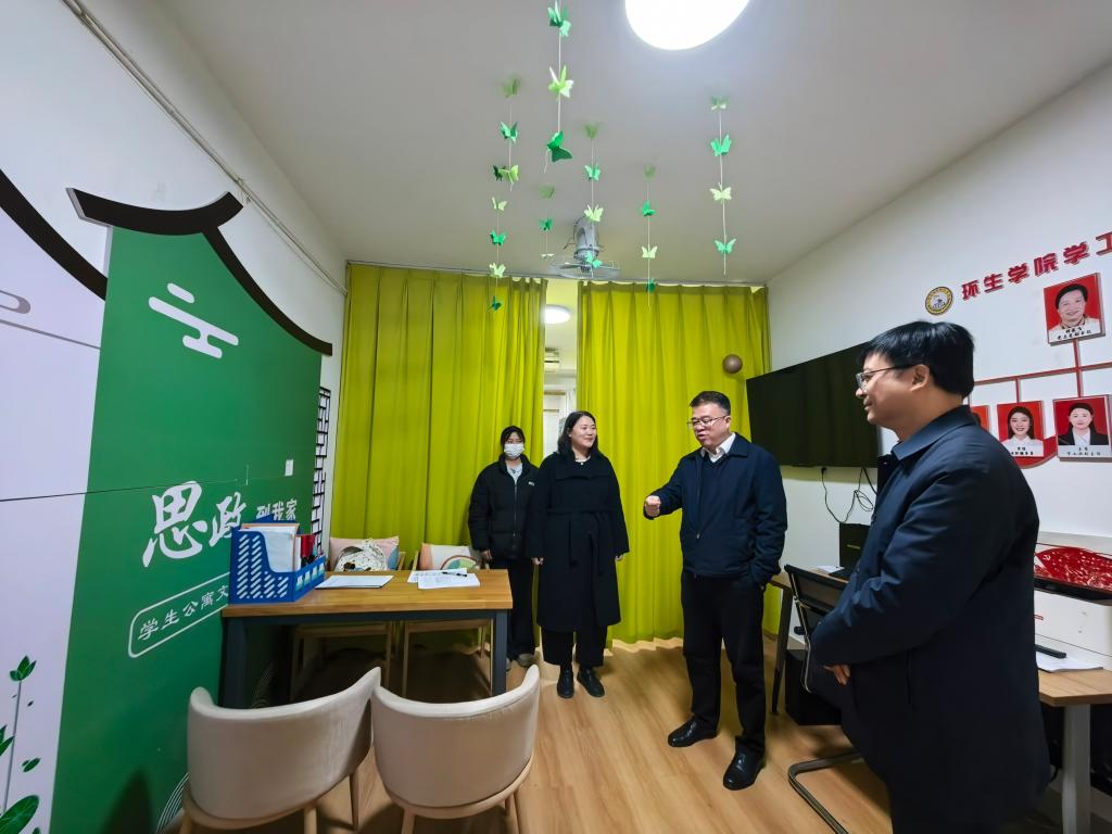 12月8日晚,党委书记郭强、党委副书记常青林深入学生社区走访辅导员工作站与学生宿舍。