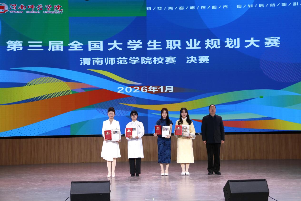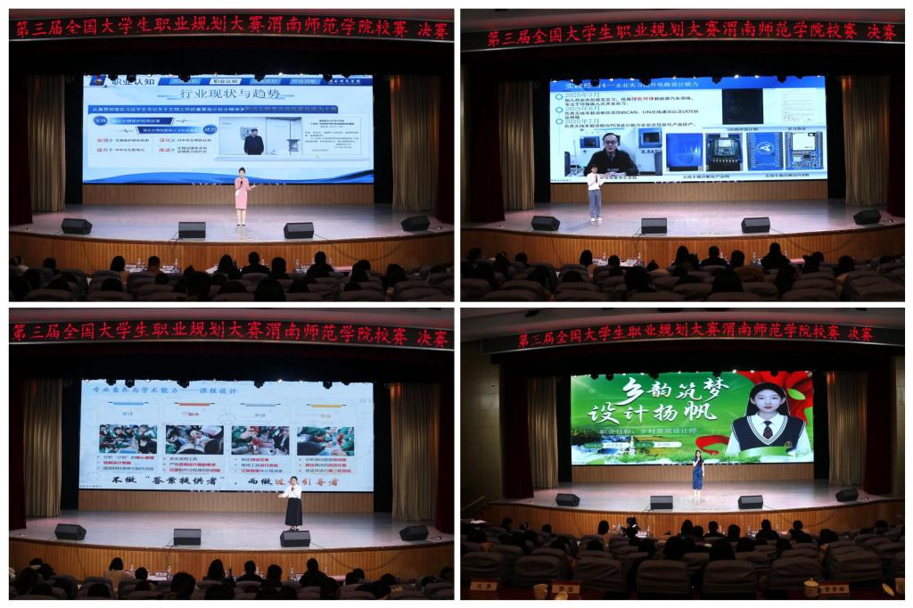 本次大赛以“筑梦青春志在四方,规划启航职引未来”为主题,自启动以来,得到了全校各二级学院的积极响应和广大学生的踊跃参与,共有一万余名学生参赛。大赛分为成长赛道和就业赛道两个赛道,经过前期15个二级学院初赛、校级复赛,最终12名选手晋级校级决赛。本次比赛邀请西北大学就业创业指导服务中心常务副主任丁莹莹、陕西铁路工程职业技术学院就业指导中心主任姜留涛、陕西丰泽实业有限公司人力资源部经理吕陇苹、中国移动渭南分公司人力资源部张伟、渭南荣耀科技传媒有限责任公司行政主管石炎炎等5名校外专家担任大赛评委。