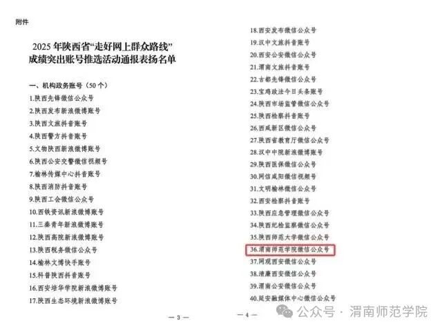 思政教育创新提质,学校精心打造“怀德铸魂‘五个一’行动”,创新推进大中小学思政教育一体化建设,高起点谋划、高标准推进、高规格筹备,全力打造可复制、可推广的“渭师模式”。马克思主义学院入选“第三批省级重点马克思主义学院”。宣传思想文化成果丰硕,学校官方微信公众号获评陕西省“走好网上群众路线”成绩突出账号(全省50个,其中高校2个);荣获教育部中国大学生在线年度“校园新媒体互动百强单位”等多项表彰;成功获批2项省级大中小学思政课一体化建设专项研究项目;另有项目被推荐参评教育部思想政治工作精品建设项目。