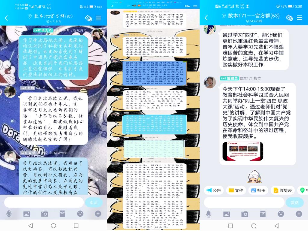观看直播课后同学们反响热烈,进行了激烈的讨论。大家表示通过此次学习,自己对党的历史和中国的发展史有了更进一步的认识,充分感悟到了如今幸福生活的来之不易,深刻感受到党中央对青年一代的殷切期望。历史是最好的教科书,忘记历史意味着背叛。青年大学生要从党史学习教育中汲取力量和养分,增强开拓的决心和勇气,用历史文化滋养自身,锤炼才干,勇于担当,为实现民族复兴,担起时代重任而奋斗。(通讯员 王淑婷 审核人 张同琦)