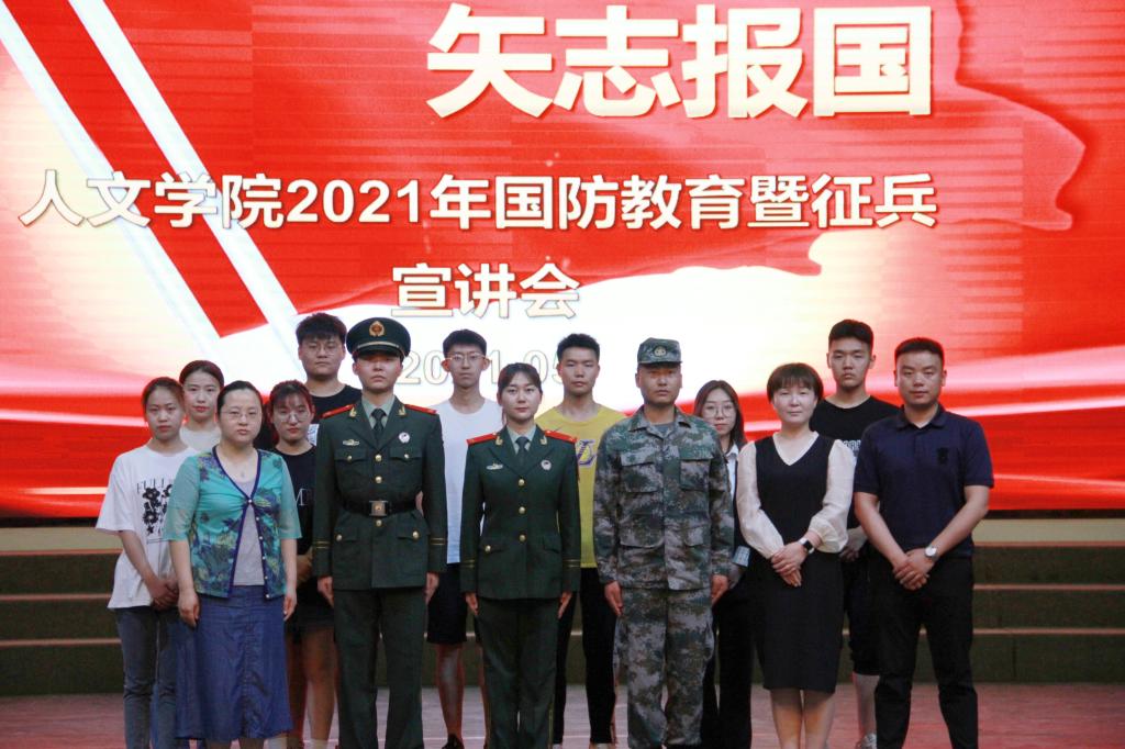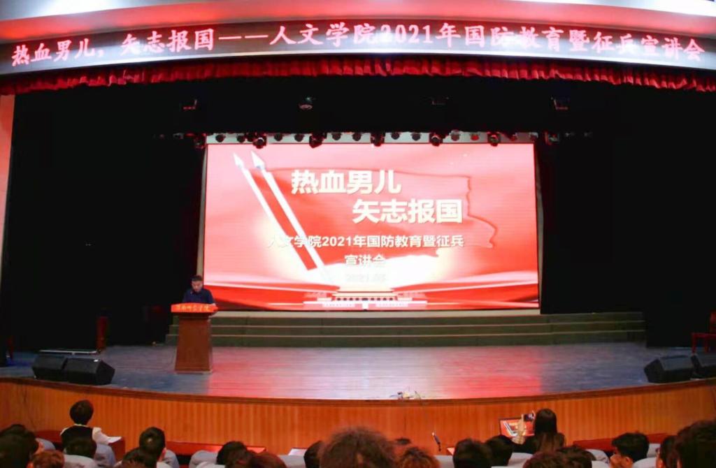 5月12日下午,人文学院召开“热血男儿 矢志报国”2021年国防教育暨征兵宣讲会。该院全体男生和部分女生参加此次宣讲会,会议由人文学院团总支书记孟子祥主持。