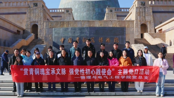 11月21日,物理与电气工程学院党总支师生赴宝鸡青铜器博物院,开展“赏青铜瑰宝承文脉,强党性初心践使命”主题党日活动。本次活动由学院党总支书记袁卫、副院长郭宝会带队。