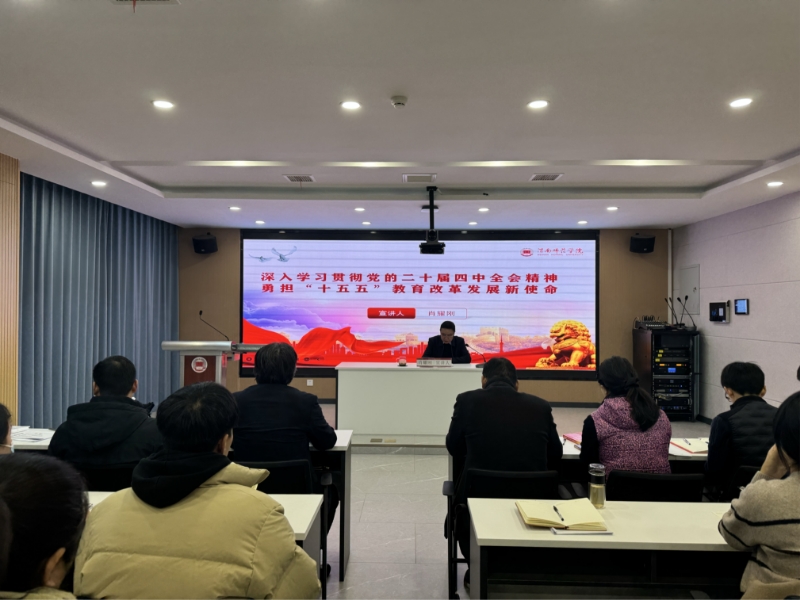 蒋平江围绕深刻领会党的二十届四中全会的重大意义和精神实质、深刻把握“十五五”规划建议的重点和要求、全面把握全会关于教育改革发展的新部署和新要求、扎实做好学校“十五五”规划谋篇等四个方面对党的二十届四中全会精神进行系统宣讲和阐释。他强调,学习贯彻党的二十届四中全会精神,是当前和今后一个时期一项重大政治任务。要深刻领会全会对于走好强国建设、民族复兴伟业新征程重大意义、对于推动事关中国式现代化全局的战略任务取得重大突破的重大意义、进一步凝聚起全党全国各族人民团结奋进磅礴力量的重大意义。报告中,蒋平江着重阐释构建新发展格局是高质量发展的首要任务、构建新发展格局是构建中国式现代化的必由之路、实现共同富裕是中国式现代化的本质要求的核心内涵,并紧密结合学校发展实际,系统解读了全会对高等教育的战略擘画,明确了贯彻落实全会关于教育改革发展部署要求,提出了深度融入地方发展、做强师范特色、推进产教融合的发展路径,并对学校扎实做好“十四五”规划收官工作、科学谋划“十五五”发展蓝图提出了工作要求。