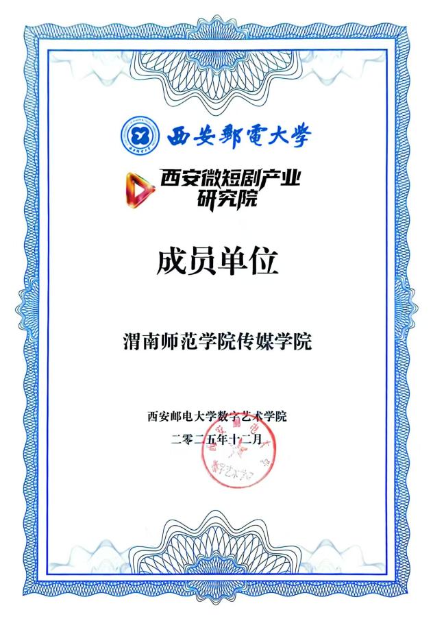 12月23日,由西安邮电大学主办,该校数字艺术学院承办的“西安微短剧产业创新发展与生态建设论坛暨西安微短剧产业研究院成立仪式”在西安邮电大学逸夫报告厅成功举办。渭南师范学院传媒学院受邀参加论坛,院长林关成、副院长侯君奕及专业负责人程昌华、张鸽舞出席活动,深度参与产业交流与学术研讨。渭南师范学院传媒学院被纳入西安微短剧产业研究院成员单位,林关成被聘为西安微短剧产业研究院专家委员会副主任委员。