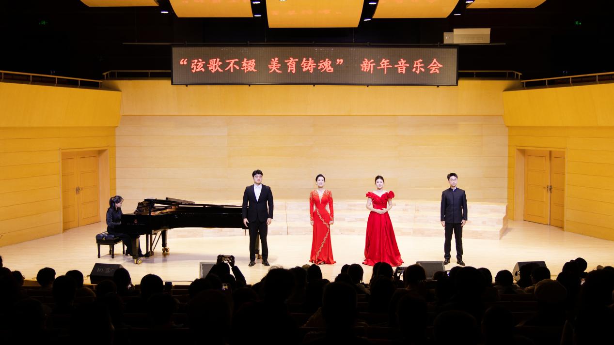 12月29日,“弦歌不辍 美育铸魂”——新年音乐会在逸夫楼音乐厅举行。新年音乐会由音乐学院、莫斯科艺术学院、渭南市音乐家协会主办、渭南市文学艺术界联合会担任艺术指导,青墨筝团、交响乐团、合唱团及专业师生联袂献艺。副校长王海峰,党委委员、统战部部长张勤恳出席活动。