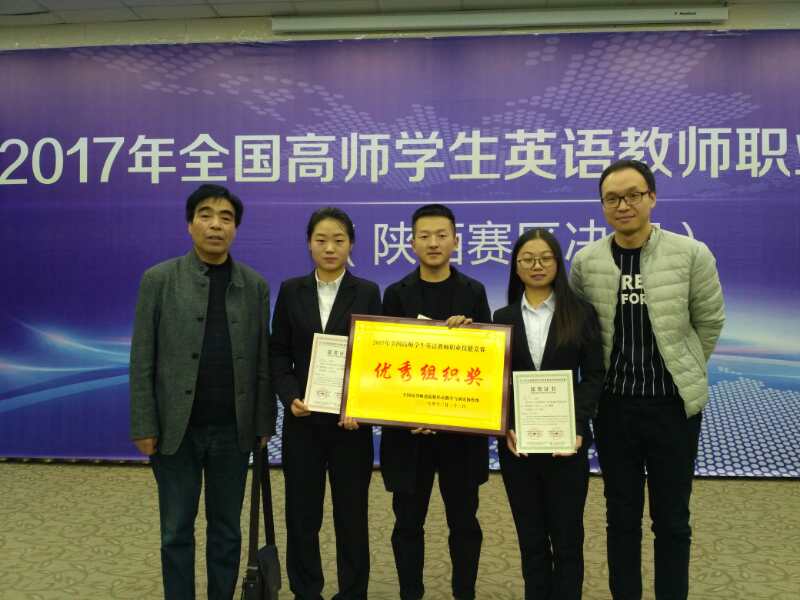 12月22日至23日,2017年全国高师学生英语教师职业技能竞赛陕西省赛区决赛在安康学院举行,来自全省师范院校英语专业的优秀选手们展开了激烈角逐。在外国语学院院长雷来富和王渭刚老师的指导下,我校外国语学院英语专业学生边艺凡获得一级一等奖,牛凡和陈丹同学获得二级二等奖。同时,渭南师范学院荣获优秀组织奖。
