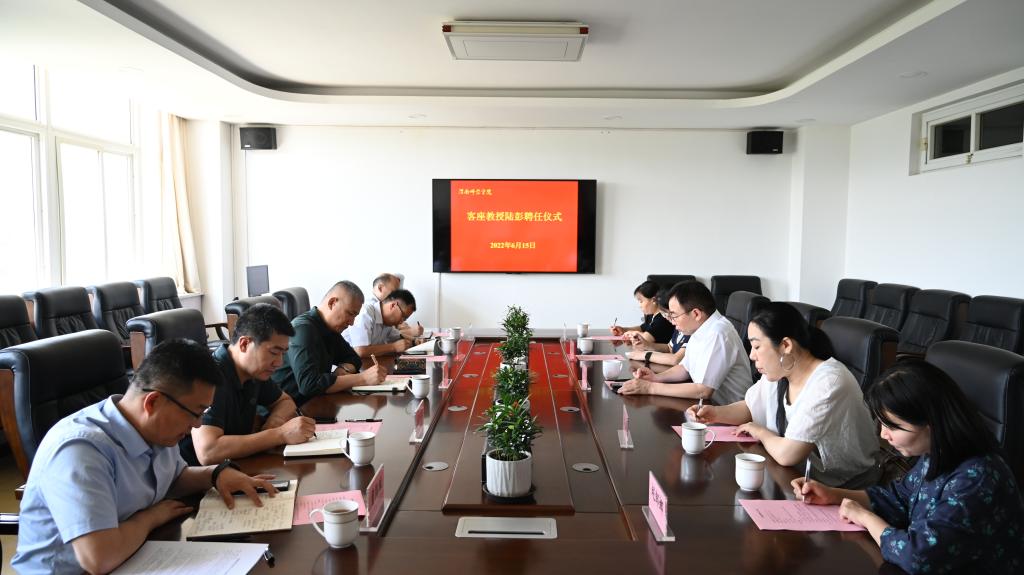 6月15日,学校在朝阳校区举行客座教授陆彭聘任仪式,校长张守华、副校长曹强出席聘任仪式,仪式由曹强主持。