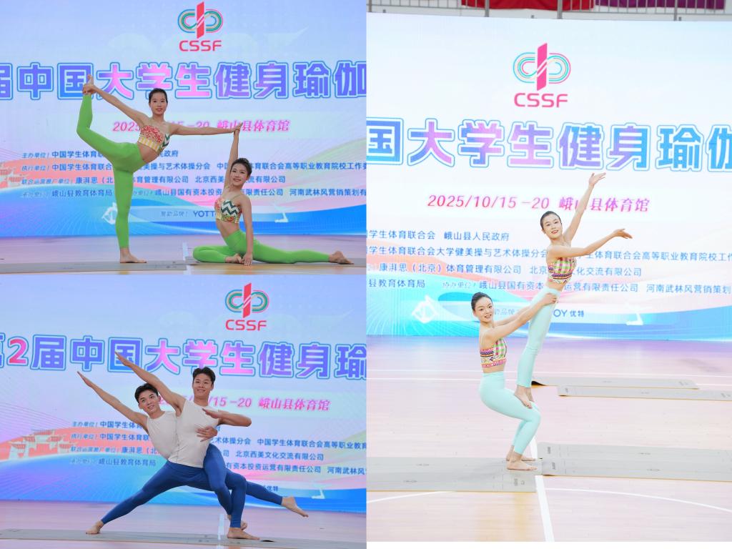 作为全国大学生健身瑜伽领域的高水平赛事,本次比赛分甲乙丙三组展开角逐,涵盖双人、集体等多个项目,对选手的体式标准、编排创意与身心协调能力提出严苛要求。赛场上,我校运动员沉着应战,在舒缓音乐中精准展现前屈、后展、扭转等各类体式,将力量控制与艺术美感完美融合,每一个动作都彰显着长期训练的扎实功底与对瑜伽精神的深刻诠释。