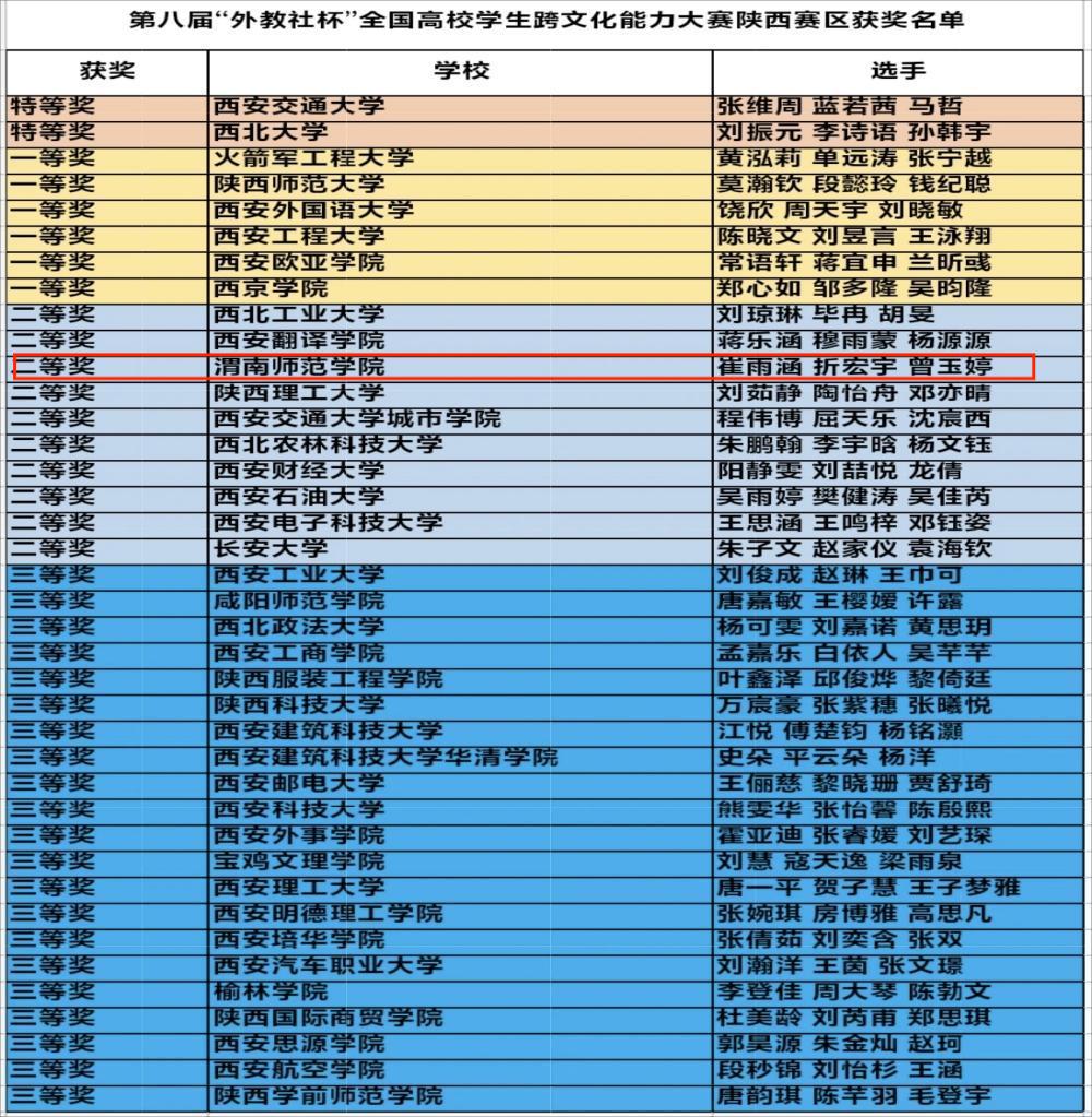 【光荣榜】我校学子在第八届“外教社杯”全国高校学生跨文化能力大赛陕西赛区中获佳绩