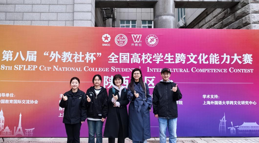10月19日,第八届“外教社杯”全国高校学生跨文化能力大赛陕西赛区比赛在西安石油大学圆满落幕。我校派出由外国语学院郝嘉亮、卢峰、孙莹三位教师共同指导,外国语学院学生崔雨涵与人文学院学生折宏宇、曾玉婷联合组成团队。该团队凭借扎实的跨文化知识、出色的沟通技巧及默契的团队协作在比赛中荣获省级二等奖。