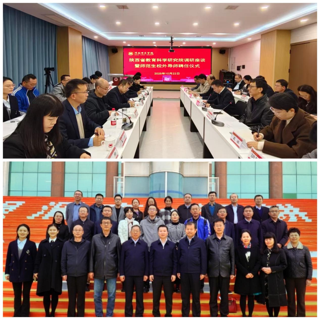 10月22日下午,陕西省教育科学研究院院长邵国希一行15人来校调研交流,举办师范生校外导师聘任仪式。校长李强出席座谈会并致辞,会议由副校长蒋平江主持。