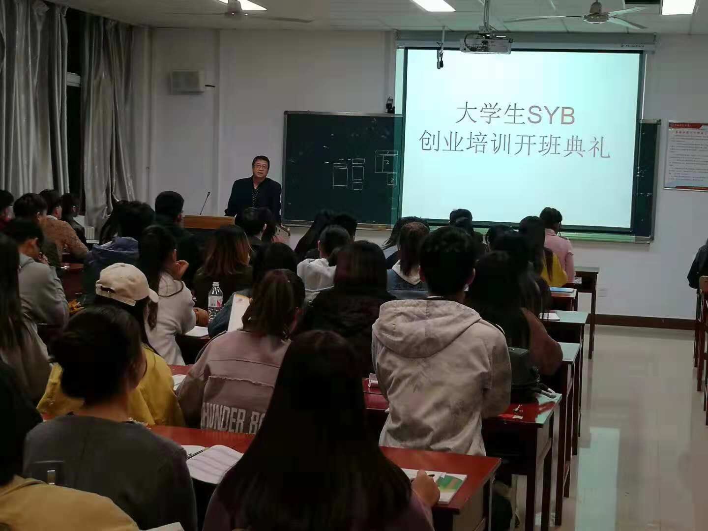 为进一步大学生自主创业,提高创业成功率,以创业促进高校毕业就业,10月30日晚,由渭南市人社局大学生创业孵化中心主办的2018年SYB创业培训班在美术教学楼406教室开班。渭南市大学生创业孵化中心科长赵纪斌,美术学院党总支副书记陈进卫,团总支书记段喆杰参加了本次开班仪式,仪式由创业孵化中心培训部成明明主持。