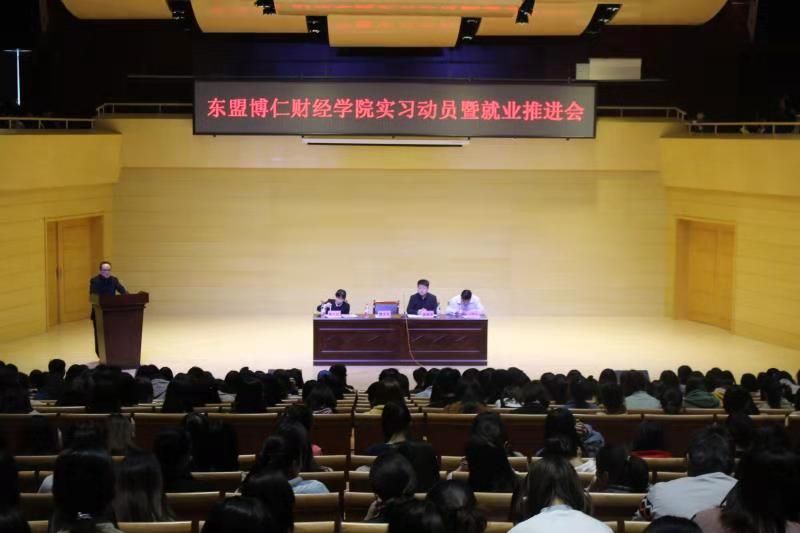 11月1日上午,东盟博仁财经学院在华金音乐厅召开2019届毕业生实习动员暨就业推进大会,学院党总支书记魏光民,副院长杨建斌,学工办主任王鹏远,辅导员及2019届预毕业生一千余人参加了会议。会议由学院办公室主任陈小红主持。