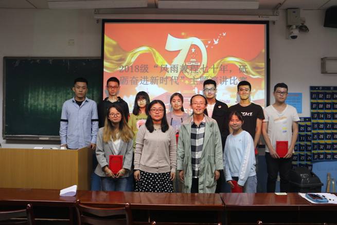 为庆祝祖国70周年华诞,展现当代青年爱国主义高尚情怀,砥砺奋进,建功立业新时代的拼搏精神。9月25日晚,计算机学院在5206教室开展“2018级学生‘风雨兼程七十年,砥砺奋进新时代’”主题演讲比赛。学院党总支副书记武楠,辅导员柳宏亚,葛兴参加。