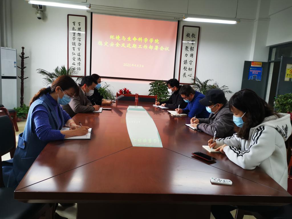 4月3日下午,环境与生命科学学院召开稳定安全及近期工作部署会议,学院党政领导班子成员参加会议,会议由党总支书记孙永秀主持。