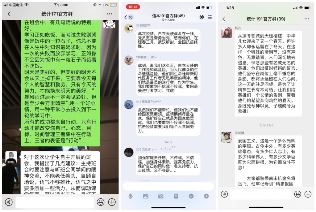 为了守好学生思想政治教育的主阵地,发挥高校思想政治政教育立德树人的作用,确保学生居家学习与成长规划全面跟进,数学与统计学院全体学生于4月5日通过云端举行了一场特别的班会。