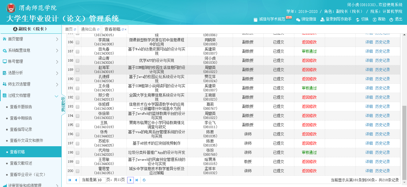 计算机学院制定了《2020届本科生毕业设计(论文)工作实施细则》和《2020届毕业设计相关时间安排一览表》,落实时间表、任务清单和实现途径,做到有制可依、有规可守、有序可循。指导教师严格按照毕业论文工作的进度安排,充分利用线上系统对学生进行写作指导,帮助学生解决完成论文(设计)过程中遇到的困难和问题,完成论文题目重新调整、论文开题、初稿批阅和审查以及各项检查工作,安排好毕业论文(设计)工作的重复率检测和答辩工作。