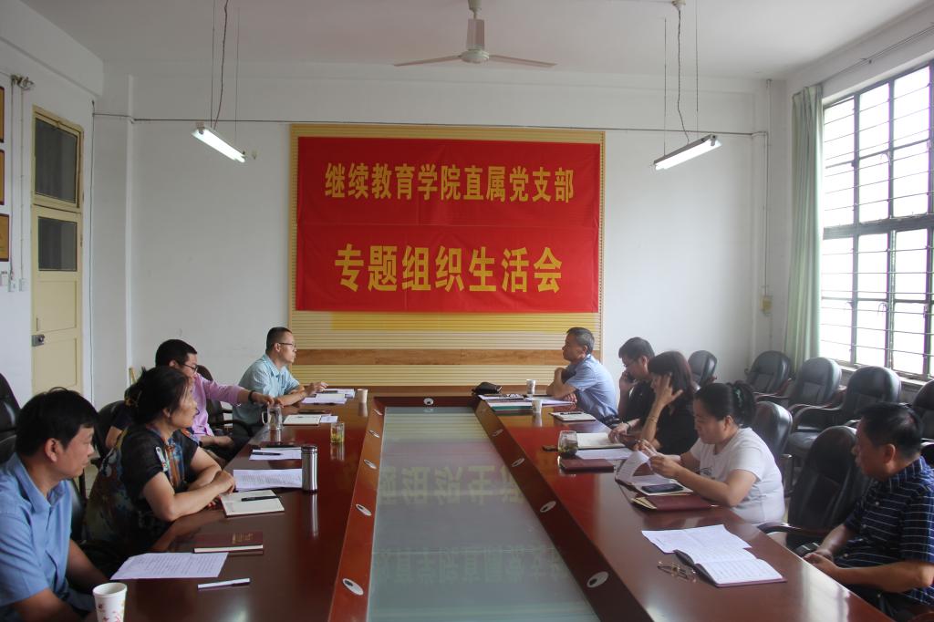 7月15日上午,继续教育学院直属党支部党史学习教育专题组织生活会召开,机关党委书记第一督导组组长王俊安、外国语学院党总支副书记高军强到会指导,会议由党支部副书记周德锋主持。