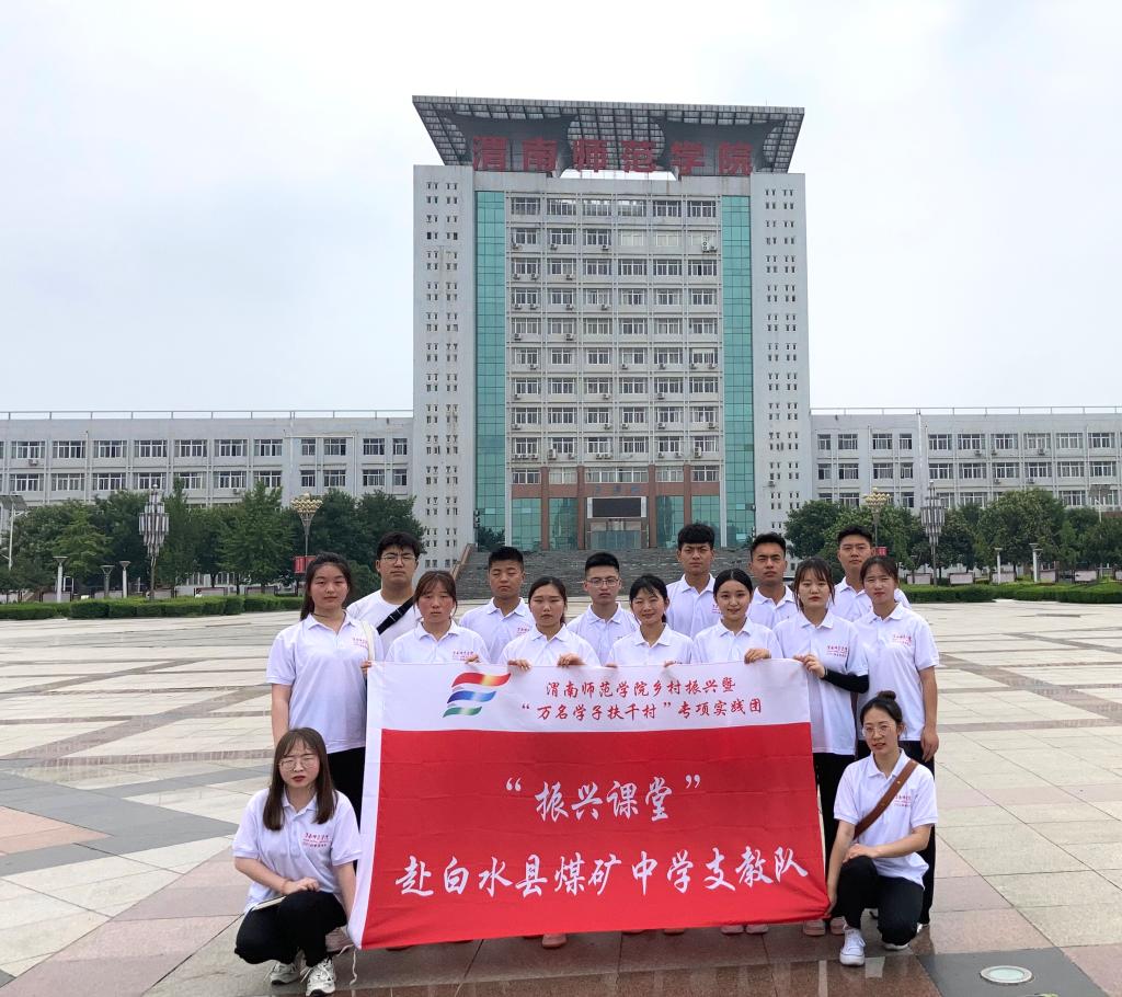 7月16日,由校团委组织,体育学院、莫斯科艺术学院、音乐学院、教育科学学院、外国语学院、马克思主义学院、环境与生命科学学院等七个二级学院,14名队员联合组成的“振兴课堂”实践团,在校团委副书记肖飞、体育学院团总支书记王斌的带领下走进白水县煤矿中学,开始以“投身支教实践 助力乡村振兴”为主题的暑期社会实践活动。