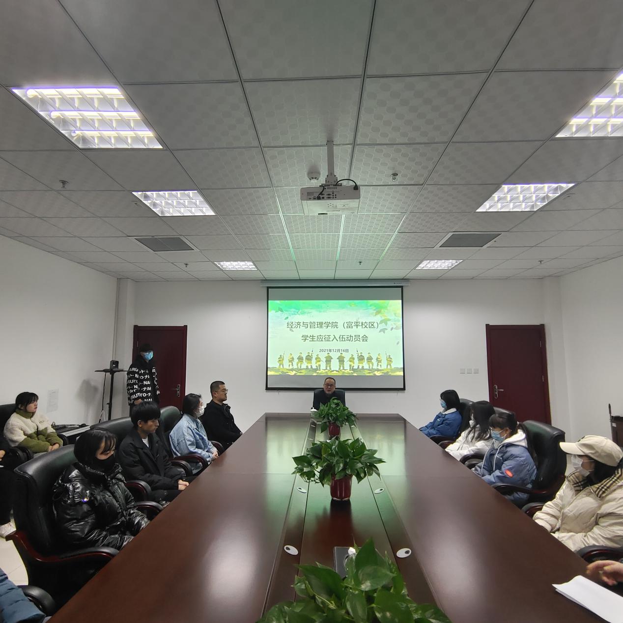 12月16日下午,经济与管理学院富平校区召开学生应征入伍动员会。学院党总支书记魏光民、部分大一学生代表参加会议。会议由辅导员杜炳鋆主持。