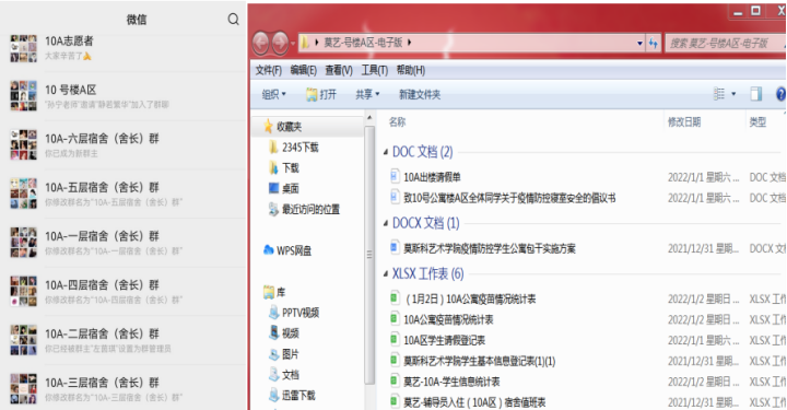 畅通渠道,科学管理。10号公寓楼A区共计6层楼260间宿舍,居住着来自13个二级学院的1350名女生。莫斯科艺术学院快速建立楼宇微信群,将相关学院辅导员、相关班级学生干部和党员纳入群中,同时积极发挥学生党员和干部的带头作用,每层楼固定2名联络员,建立楼层舍长微信群,完善了全楼学生花名册和联系方式,便于及时收集学生反馈的问题,传达学校疫情防控的最新精神,第一时间为学生做好服务,保驾护航。