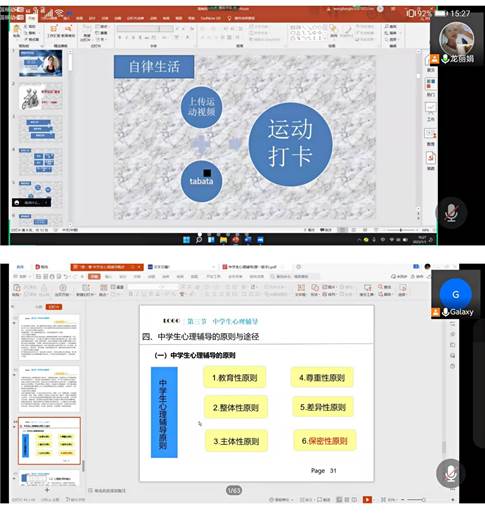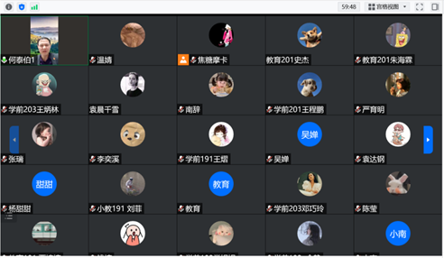 第一党支部书记李西彩向全体党员传达了我省教育系统关于疫情防控相关会议精神,要求师生党员强化服务意识,发挥专业优势,开展特色活动。各党小组分享了党员教师在疫情防控中开展的系列活动。教育系组织开展线上微课和教学设计主题分享,学前教育组织开展师范生技能交流会等系列主题活动,心理学团队积极开展“心援热线”服务学校和社区,教育技术学团队为师生提供教育教学信息资源服务和技术支持,大家还分享了下一步开展疫情思政大课的设想和计划。