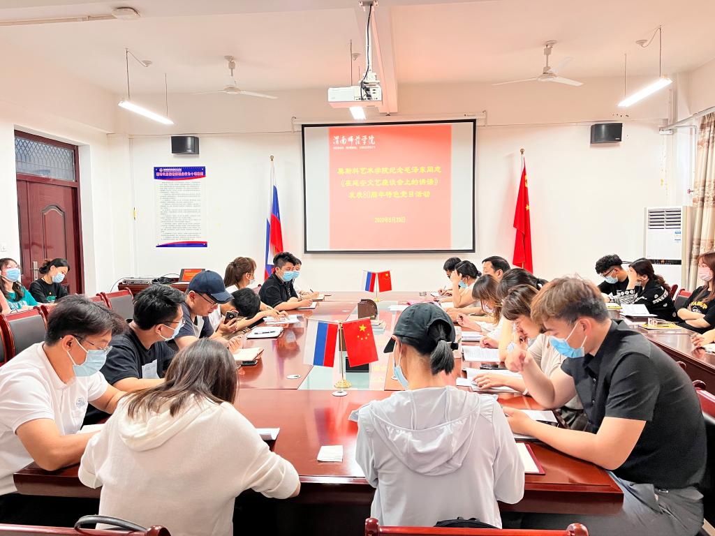 5月23日下午,莫斯科艺术学院举办纪念毛泽东同志《在延安文艺座谈会上的讲话》发表80周年主题党日活动,学院全体师生党员参会。