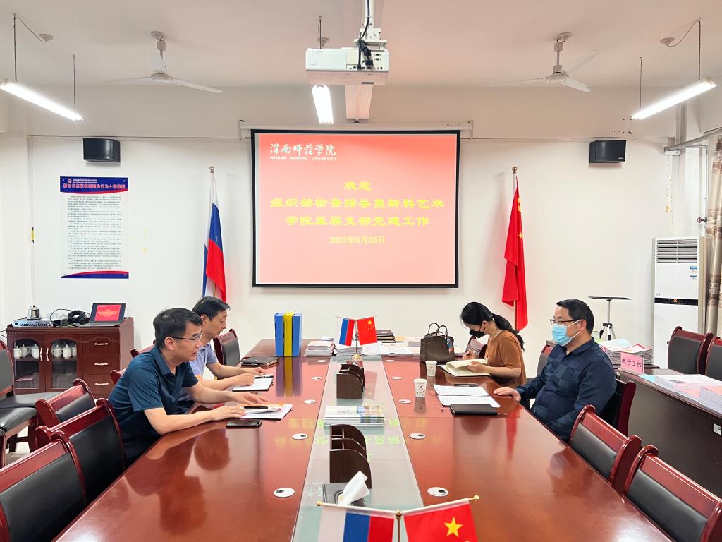 5月26日,校组织部副部长董康军检查指导莫斯科艺术学院党支部标准化、规范化建设工作,组织部正科级干部叶晓燕陪同。