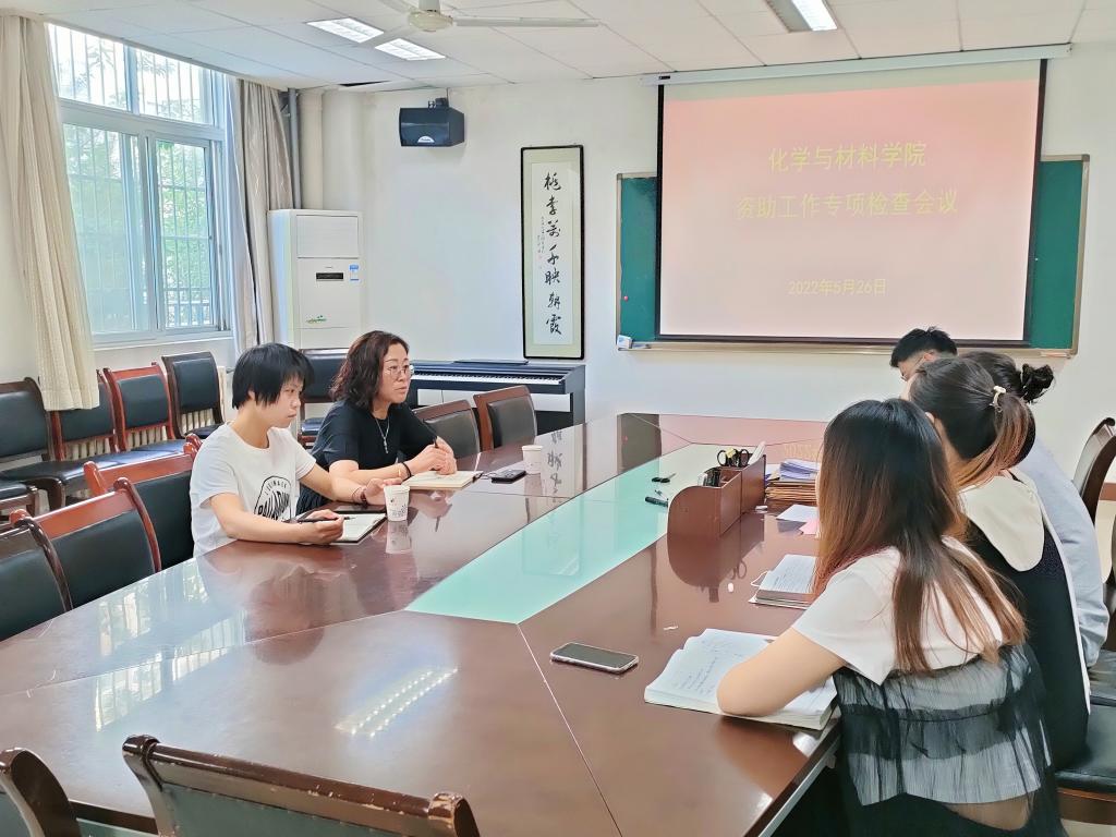 5月26日上午,学生工作部(处)副部长权轻舟、科员杨妍深入化学与材料学院开展学生资助调研指导工作。化学与材料学院党总支副书记任晓婷,全体辅导员参加会议。