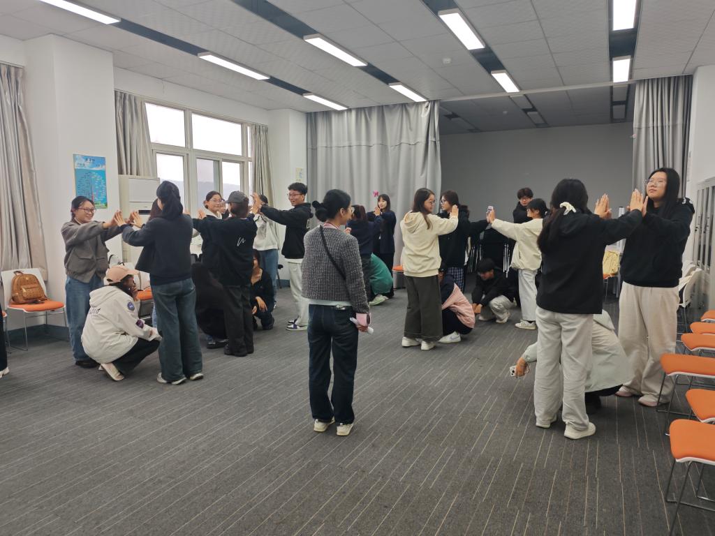 活动开始,程芮强调,心理委员是学校心理健康教育工作体系中不可或缺的重要力量,是同学们身边“看得见、找得到、信得过”的心理支持伙伴。希望通过此次团体辅导,帮助心理委员们掌握实用的心理知识与技能,增强自身心理调适能力,同时提升团队凝聚力,为后续班级心理健康工作的开展奠定坚实基础。并向心理委员介绍了团体心理辅导活动的含义、特点、目的及活动规则。在介绍完团体心理辅导的核心信息后,程芮带领心理委员进行了“名字接龙+特质标签”“松鼠和大树”“数字小游戏”“珠行万里”“表情传递”、团队文化共创活动,现场氛围热烈,笑声不断。