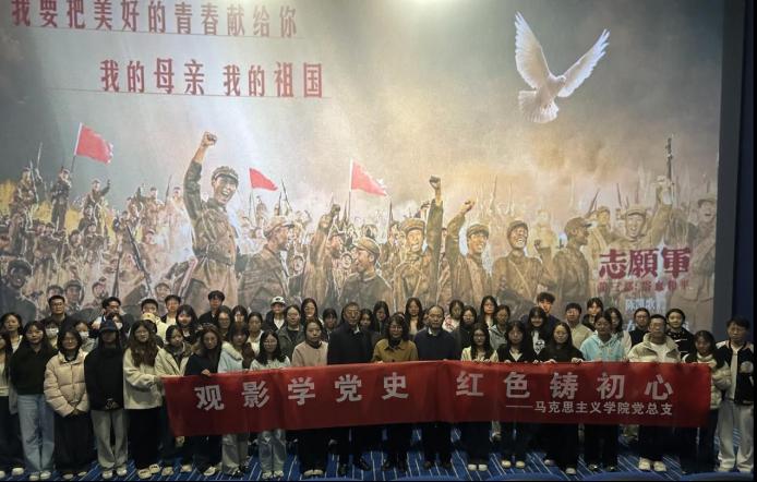 10月29日,马克思主义学院党总支组织开展“观影学党史 红色铸初心”主题党日活动,集体观看了抗美援朝题材影片《志愿军3:浴血和平》。学院领导班子成员、教师党员代表、学生党员、发展对象、积极分子及党史班学生代表等80余人共同参与活动。