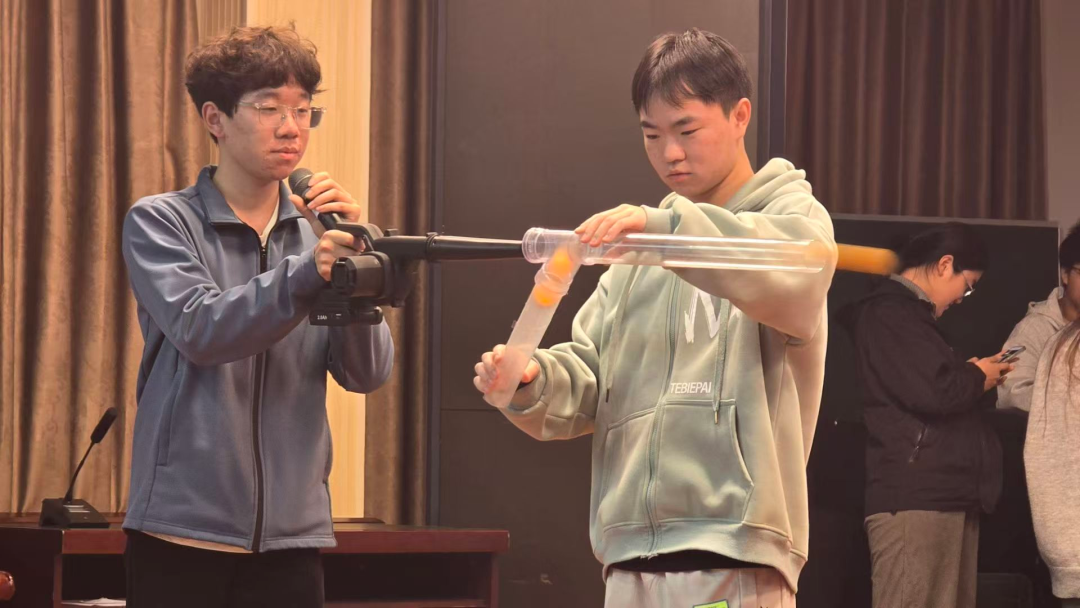 活动聚焦“体验科学魅力 提高孩子兴趣”,精心设计奇妙的科学实验。当实验小组的成员们转动仪器产生“火龙卷”时,引得全场惊叹;当“陀螺仪”平稳地定在半空中时,孩子们摩拳擦掌跃跃欲试;而威力十足的“加特林机枪”发射出弹球,将全场氛围推向高潮。每一个小实验都将理论知识直观地展示在孩子们面前,让孩子们在视觉震撼中探索科学的奥妙。