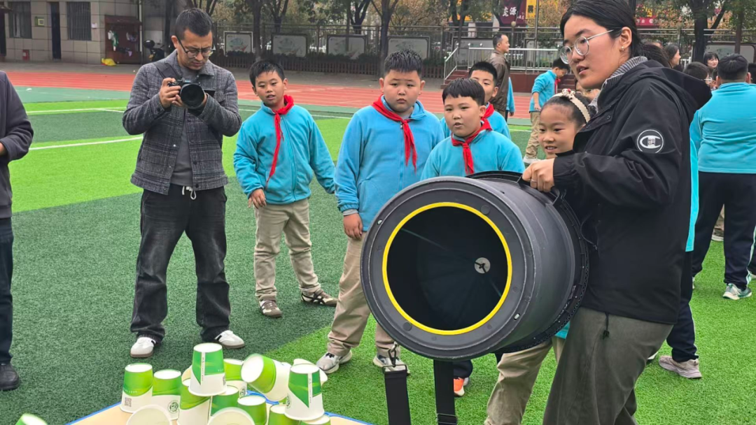 11月5日下午,渭南小学的校园里充满了孩子们的欢笑和惊叹声。物理与电气工程学院副院长郭宝会带领学院科普宣讲团成员,为孩子们带来一场精彩的科学科普实验。