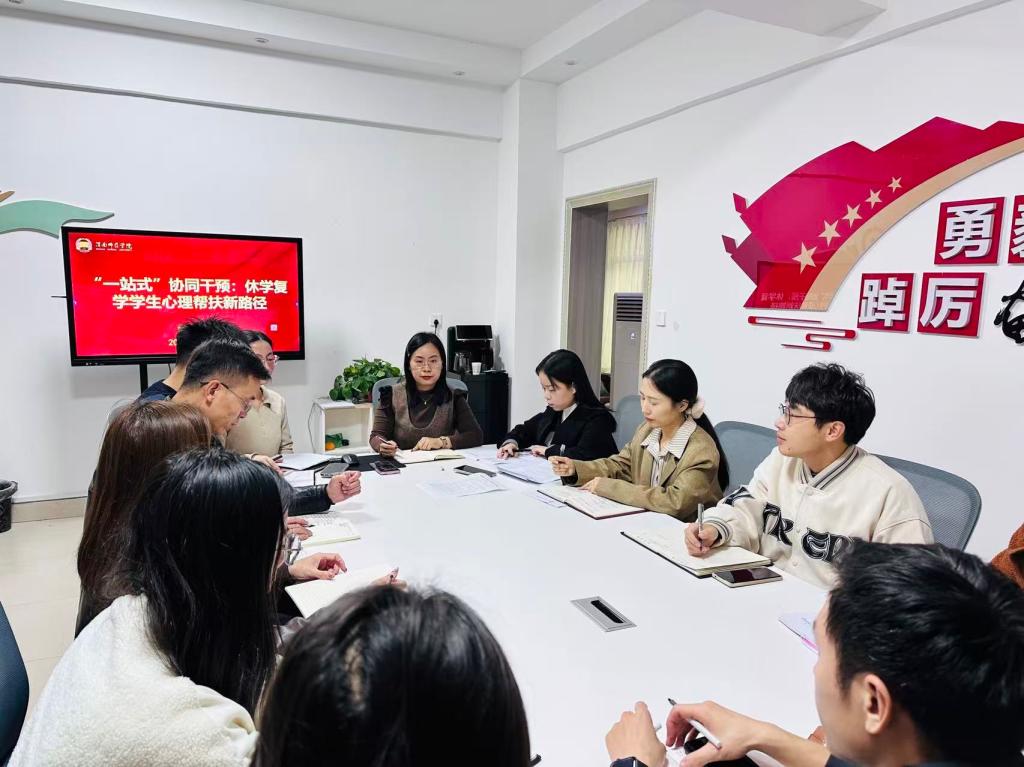 为破解休学复学学生心理适应难题,提炼可复制、可推广的心理帮扶经验,11月6日下午,学校召开辅导员沙龙,活动主题为“‘一站式’协同干预:休学复学学生心理帮扶路径”。活动由学生工作部副部长刘原主持。
