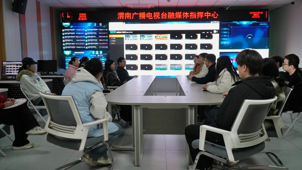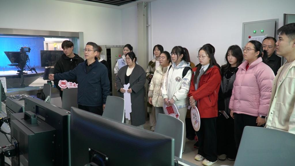 11月13日下午,我校党委宣传部组织全媒体中心学生记者代表,在指导教师于占豪的带领下,赴渭南广播电视台开展实践研学活动,零距离、沉浸式学习新闻采编全流程。