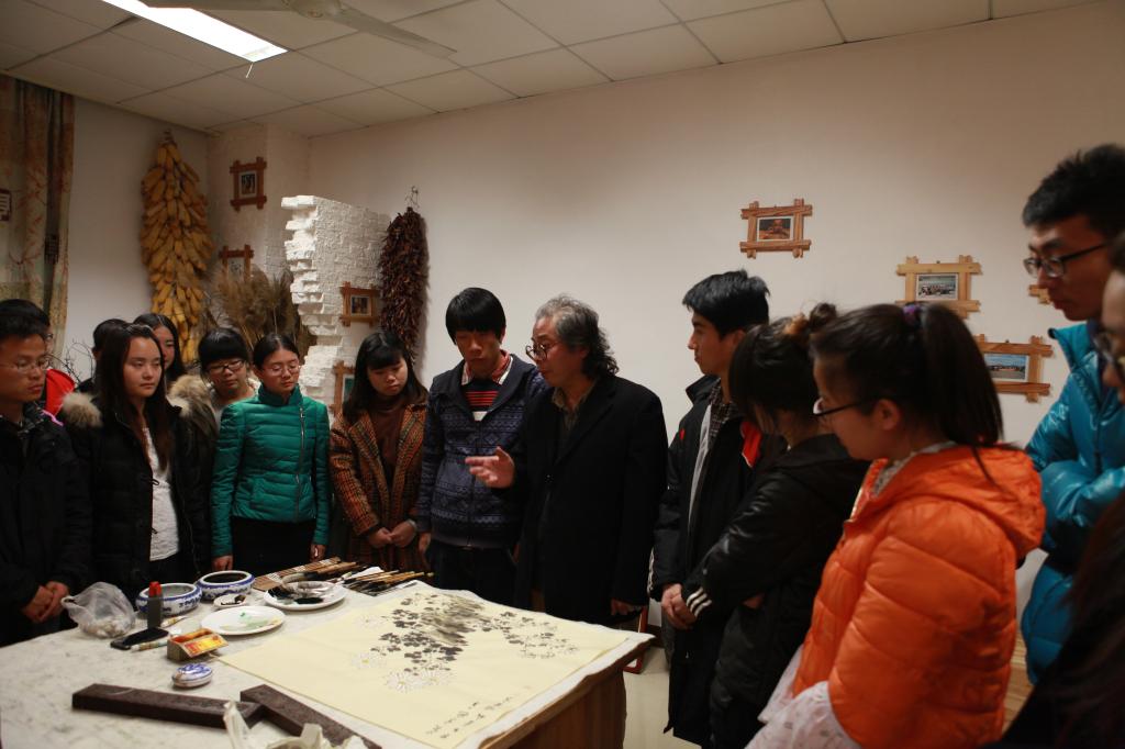 李增善教授着重从写意花鸟画的工具、材料,写意花鸟画用笔、用墨、用色、用水、用纸等基本技法的运用方面进行介绍,特别强调当代写意花鸟画书法用笔的重要性。