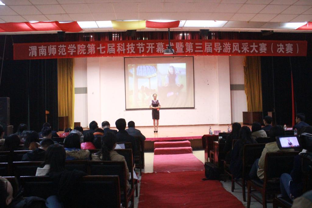 11月26日,我校第七届大学生科技节开幕式暨第三届导游风采大赛在一餐三楼多功能厅隆重举行。校党委委员、组织部部长杨小渭、经济与管理学院党总支书记魏建中、院长王双喜、党总支副书记景根杰、团委书记姚明亮出席,来自各二级学院学生代表五百余人参加本次大赛。开幕式由校团委副书记马耀斌主持。