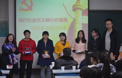 为宣传和推广社会主义核心价值观,培养大学生应对讲台、提高心理素质和传播社会真善美,11月27日晚人文与社会发展学院团总支在博识楼1201教室举行 “践行社会主义核心价值观·讲述身边的故事”决赛。