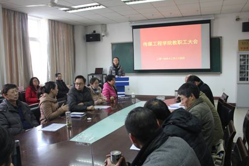 12月24日,传媒工程学院教职工大会在学院会议室召开,校工会副主席张秋侠参加会议并做了讲话。