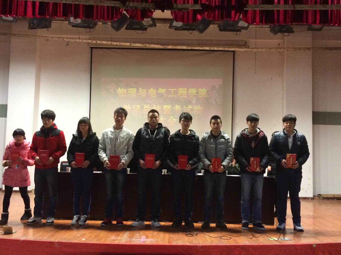 1月11日晚,物理与电气工程学院2014年学风建设总结暨考试动员大会在一餐三楼报告厅举行,参加本次大会的有学院党政领导、新生班主任、辅导员以及13、14级的全体学生。