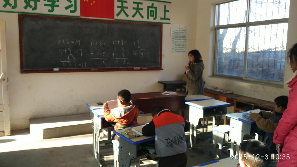 在此期间,志愿者们分别为留守于唐壕小学的6名学生开展了语文、数学、科学、体育等课程。我校人文学院志愿者杨娇同学和曾能琪同学在课堂上分别给孩子们教授了古诗、算术等知识。随后,我校化学与环境学院志愿者刘佩为孩子们教授了节约用水等科学常识。我校体育学院志愿者李孟卓给孩子们示范了擒敌拳招式,孩子们认真学习,志愿者们以青春热血的态度,以友爱、奉献的精神为留守在秦岭脚下的孩子们上了一堂又一堂不同以往的课;孩子们期盼和认真的眼光和上课专注的神情充分肯定了我校志愿者的付出。授课结束后,志愿者们协助詹老师一起整理了闲置桌椅,并且对学校的情况做了进一步的了解。最后,志愿者同孩子们一起于教室前合影留念。
