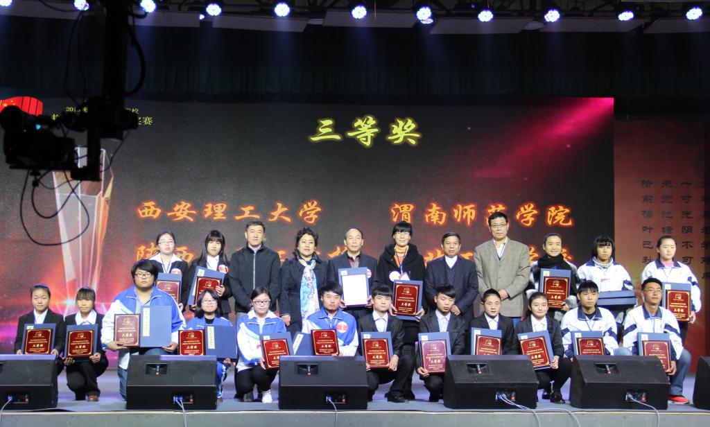 本次规范汉字书写大奖赛由陕西省语言文字工作委员会、陕西省教育厅、语文出版社联合举办,西安理工大学承办。原国家教委副主任、国家语言文字工作委员会主任、国家教委总督学柳斌等领导、专家出席了大学组的决赛。大赛组委会根据测试以及此类活动开展情况从全省遴选了12所高校参加比赛。我校代表队由2014级人文学院汉语言文学专业的李晨光、何丽英、吴小敏、汉语国际教育专业的熊苗苗、教育科学学院教育学专业的梁诗雨、莫斯科艺术学院学前教育专业的韩心悦等6位同学组成,人文学院李险峰老师担任指导教师。在12月23日的比赛中,经过激烈的角逐,我校代表队获得决赛资格并以优异成绩荣获团体三等奖。