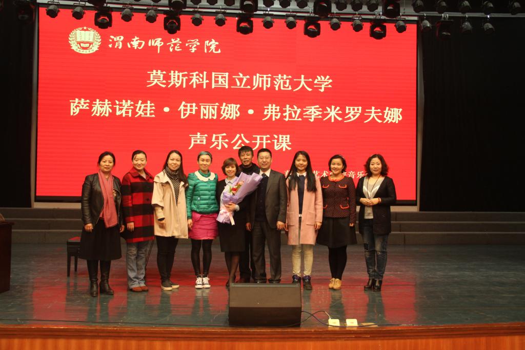 萨赫诺娃•伊丽娜•弗拉季米罗夫娜先后为我们演唱了4首风格不同的俄罗斯声乐作品:拉赫玛尼诺夫的《练声曲》、俄罗斯民歌《在山谷中歌唱》、《燃烧一切》、《莫斯科郊外的晚上》,并耐心地对我院4名学生进行了现场指导。此次公开课使师生们深受启发,受益匪浅。