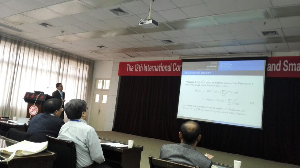 会议上,我校陈斌副教授应邀做了题为“Mock theta function and mixed modular form” 的大会英语主题报告,并就自己的研究问题与其他专家进行了深入交流,报告受到了专家、学者们的诸多好评。