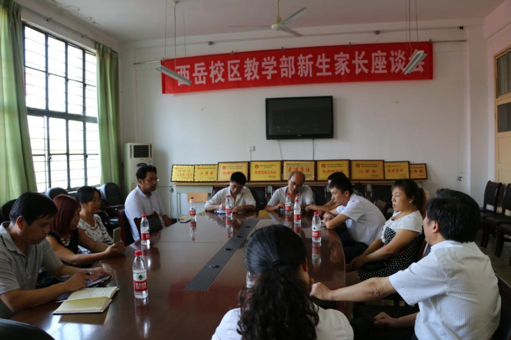 9月10日下午,西岳校区教学部新生家长座谈会在207会议室召开,西岳校区教学部主任韩双明,商学院副院长许存兴,西岳校区教学部副主任李武军、陈进卫参加了座谈会,会议由陈进卫主持。