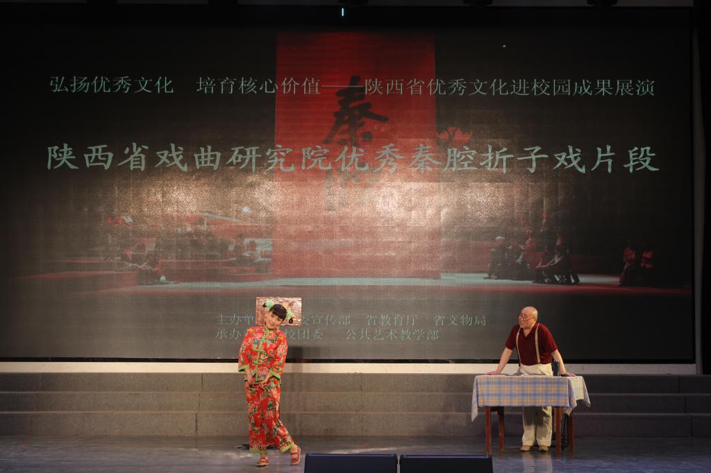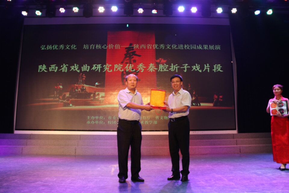 9月25日晚,由省委宣传部,省教育厅和省文物局主办,校团委承办的“弘扬优秀文化,培育核心价值”――陕西省戏曲研究院优秀文化进校园成果展演在我校陶然楼演艺厅成功举办。我校党委副书记赵伏友,校长助理韩小卫,团市委副书记赵超、张晓峰,省戏曲研究院、渭南市文联、市武警支队等相关部门领导共400余人一并观看演出,校团委副书记姚明亮主持活动。