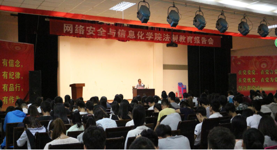 为进一步增强同学们的法制意识,9月22日晚,网络安全与信息化学院在一餐三楼多功能厅举行了法制教育报告会。报告会邀请我校屈琦教授主讲。