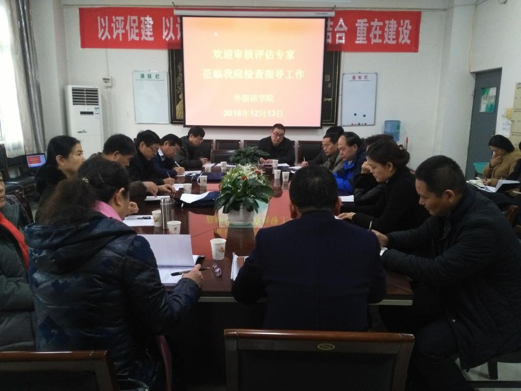 12月13日上午,程书强副校长和学校自评估专家组来到外国语学院检查指导本科教学审核评估自评工作。外国语学院教学副院长乔明文首先汇报了学校本科教学审核评估工作启动以来外国语学院围绕办学定位与目标、师资队伍、教学资源、培养过程、学生发展、质量保证所做的工作以及存在问题。