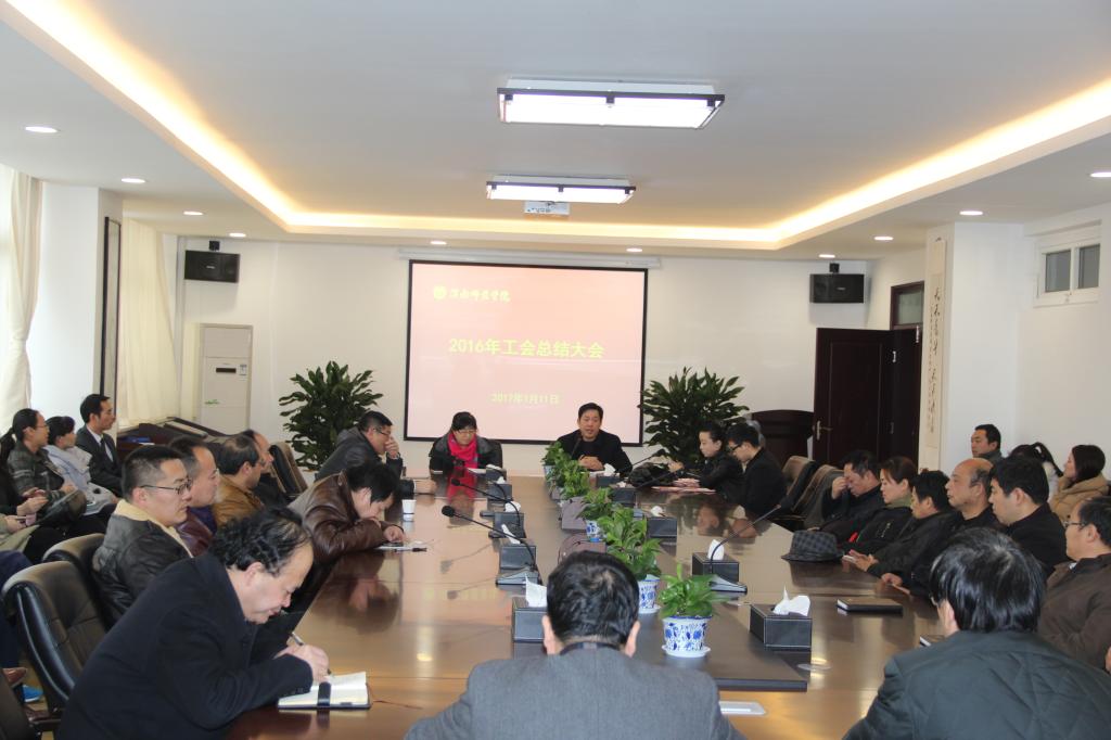 1月11日下午,学校工会在厚德楼四楼会议室召开了2016年工作总结大会,校工会委员、各专门委员会委员、各分会委员参加了会议,会议由校工会副主席杨秀香主持。
