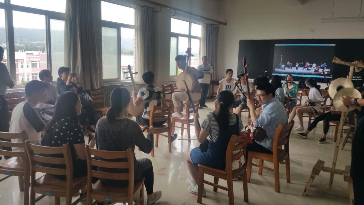 曹文清教授与老腔剧社学生合影